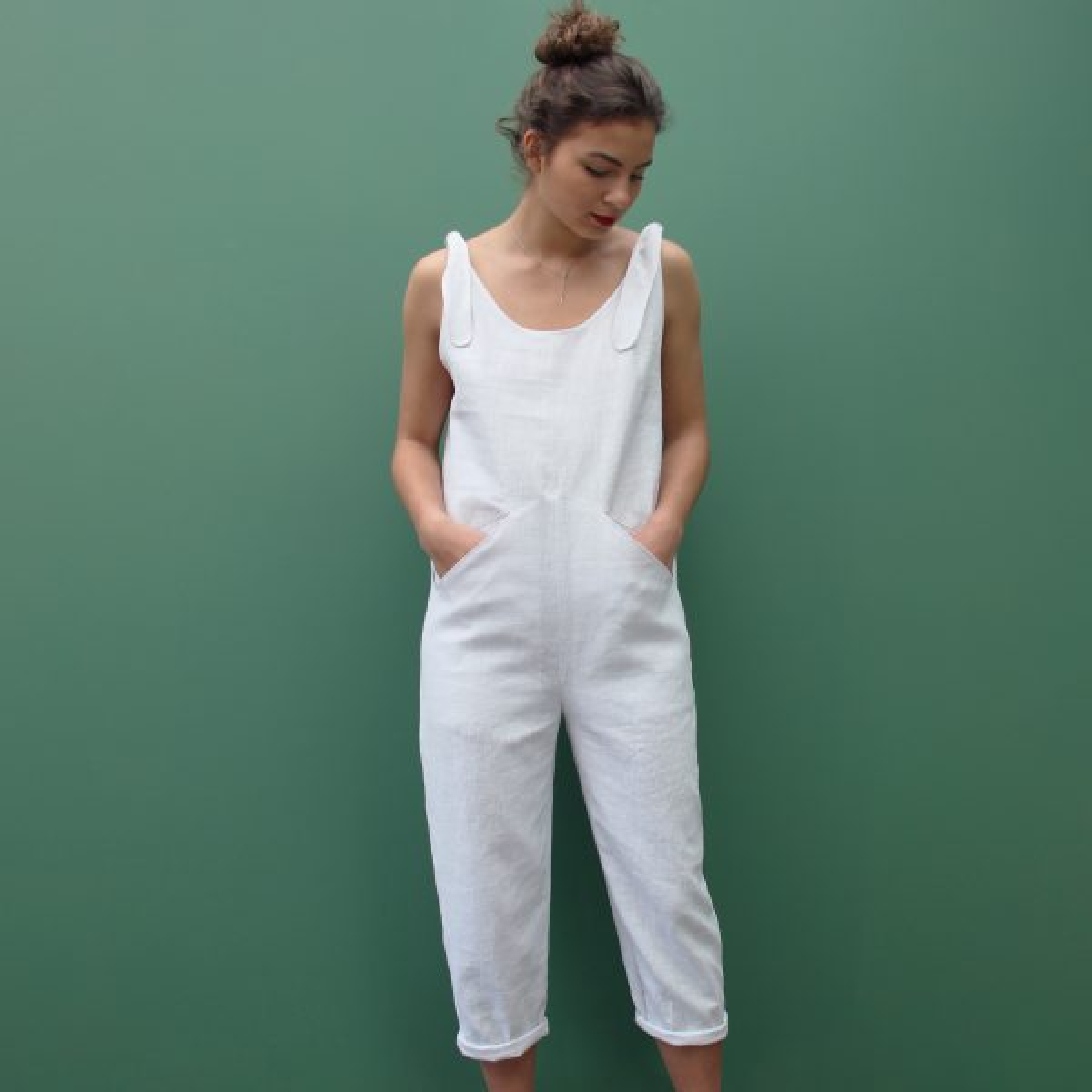 Le printemps est là et l'été approche à grand ps, cette petite combinaison est idéal pour ces 2 saisons. Elle a une coupe originale et décontractée et sera très agréable dans un tissu type lin ou un tencel !